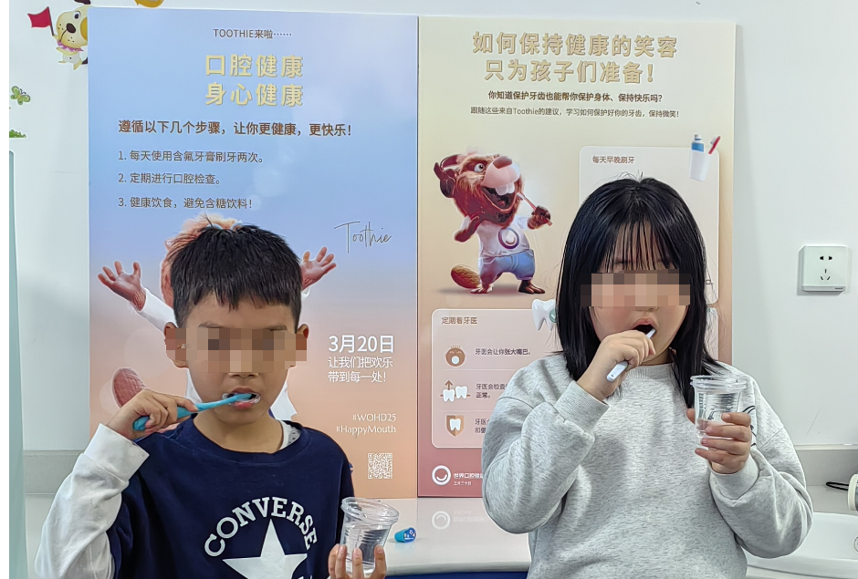 活动三:“口腔健康 身心健康”进校园活动 为进一步扩大口腔健康教育的覆盖面,儿童口腔科护牙团队走进大连市格致新校,开展了一场以“口腔健康,身心健康”为主题的科普盛宴。活动旨在激发儿童对口腔健康的关注,普及科学的刷牙方法与护牙知识,助力孩子们从小养成良好的口腔卫生习惯。